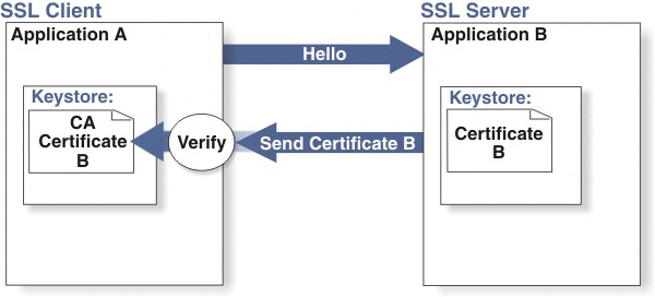 A one-way SSL: the SSL-client application is not verified by the SSL-server application. Only the server is verified.