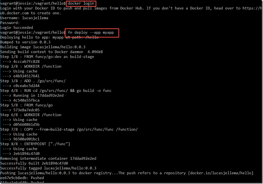 - Create VirtualBox VM with Debian and Docker (for me, Ubuntu 14 failed to run Fn; I created issue 437 for that) – this step is described in a different article