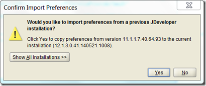 Press No (or Yes if you have a previous JDeveloper installation and want to import the preferences you applied in that installation).