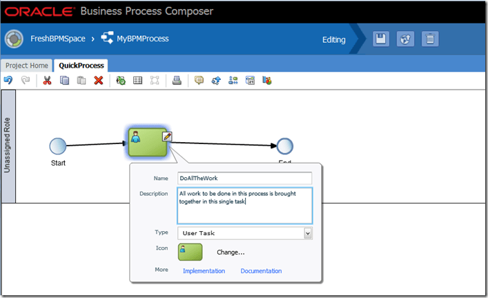 We see a clear trend with Oracle BPM Suite that the Process Composer – the browser based modeling IDE – is getting richer in functionality. Before too long, virtually all modeling/design and many implementation activities will be supported by Process Composer. With the upcoming Process Cloud Service where the process is created in its entirety through browser based tooling, this is of course necessary.