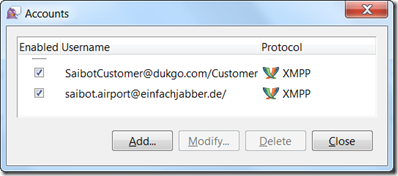 Here we have account SaibotCustomer@dukgo.com add saibot.airport@einfachjabber.de as his new best buddy – using the local alias Saibot Airport Administration.