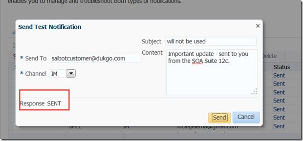 The goal of this article is not to commiserate over XMPP. It is to show you how SOA Suite can be configured to participate in XMPP based conversations – for now only as a sender of messages (we will discuss inbound integration with XMPP in a later article). In SOA Suite 12c, the functionality that was already available from the UMS (User Messaging Service) and the UMS Adapter in SOA Suite 11g has been continued and a little bit extended. I will show you what it looks like and how to make it to work.