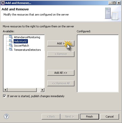 1. Click on the Oracle CEP v11.1 at localhost Server in the Servers window. From the context menu, select the option Add and Remove.