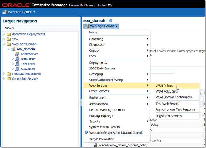navigate to Web Logic Domain – soa_domain | Web Services | WSM Policies.