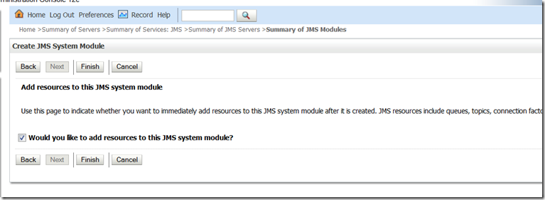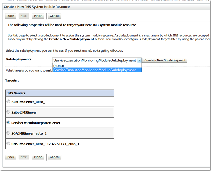Select the appropriate subdeployment and JMS Server (those that were created earlier):