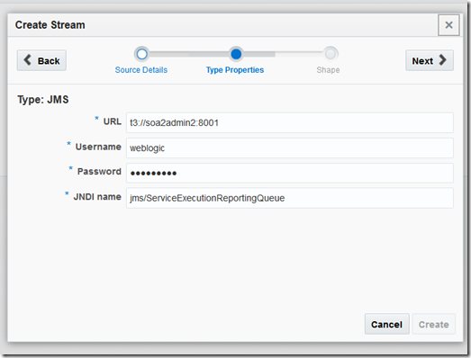 Enter a name and a description and select the Stream’s source type as JMS: