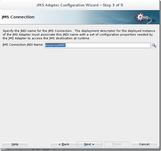 For the JMS Connection JNDI Name, browse on your server to find ‘eis/jms/AMIS’