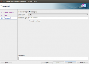 Next create a new Business Service (File, New, Business Service). It is not visible in the component palette since it is a custom transport. Next use transport Kafka.