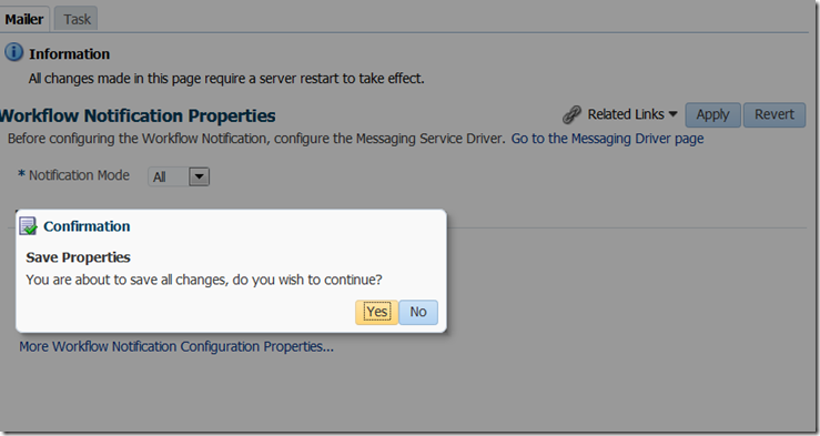 After making this change, I return to the page to send my test notification again. Unfortunately, the minor setback is still there. Perhaps a restart of the managed server for SOA Suite is required? I sincerely would hope not, but let’s try it anyways.
