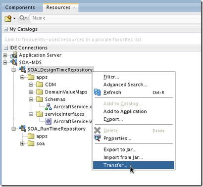 Click Transfer on the context menu for the SOA Design Time MDS connection.