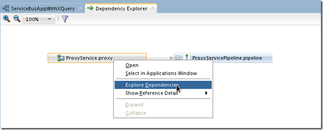 For example, let’s look at this simple Service Bus project. Right click on the pipeline definition in the navigator window and select the option Explore Dependencies:
