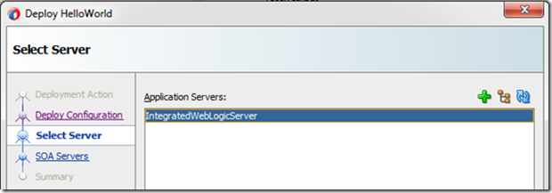 In the next screen make sure the IntegratedWebLogicServer is selected.