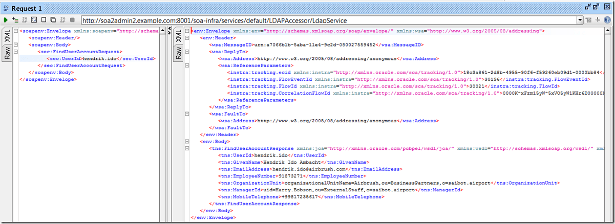 concat(‘(&(objectClass=person)(uid=’,/ns0:FindUserAccountRequest/ns0:UserId,’))’) which resolves to strings such as (&(objectClass=person)(uid=hendrik.ido)) – which is LDAP speak for find all entries of objectClass person and the uid attribute set to the string value hendrik.ido.
