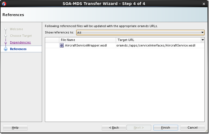 This page provides an overview of the references [to the transferred resources] in the SOA composite that will be updated as part of the transfer you are about to start: