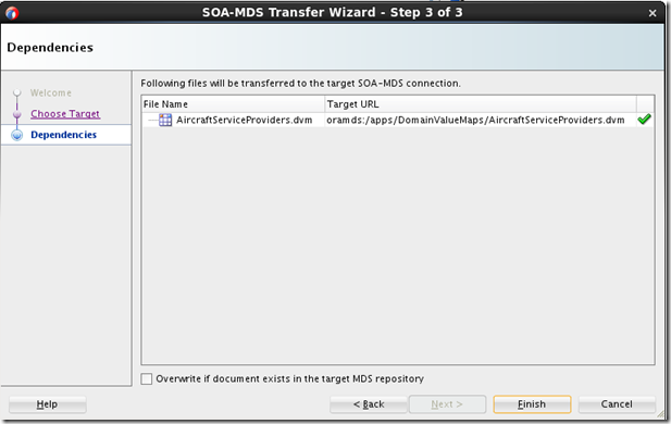 The Domain Value Map can also be published to the Designtime MDS Repository, to make it available to other projects – both Service Bus and SOA composite:
