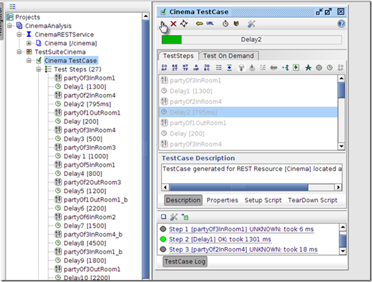 At this point I create a test case in SoapUI for the REST service – and run it: