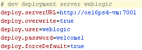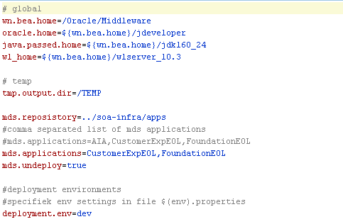 Then you have the env.{env}.properties file. This file contains the server settings of the specific server environment. The build file uses the one that represents the deployment.env value.