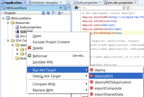 We’re now ready to deploy to our remote MDS. Right-click on the build.xml file and select the option: Run Ant Target -> deployMDS. This file can also be run on the command line or by a build server.