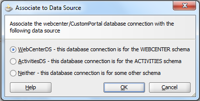 Upon creation, JDeveloper proposed to associate these connections with Activities and WebCenter – which is exactly what I want.