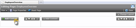 Click on the Pages link. Select the dynamically created page EmployeesOverview. Select Edit Page from the Actions menu:
