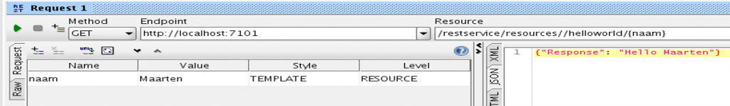 I can do a HTTP GET request on an URL like http://localhost:7101/restservice/resources/helloworld/Maarten to call the service with name=Maarten.