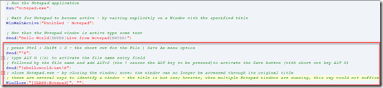 See how the function WinWaitActive – that waits for the Notepad application window – returns a handle. This handle is used in the call to _ScreenCapture_CaptureWnd to restrict the screen capture to only this window.