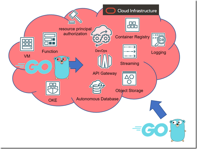 I have collaborated with the Oracle Developer Relations team and several Oracle product managers to compile a series of articles about Go and Oracle Cloud Infrastructure (OCI). This series discusses how Go applications can be created and run on OCI – in Compute Instances (VMs), containerized on Kubernetes, or as serverless Functions. The articles show how to automate the build and deployment of these Go applications using OCI DevOps. An important topic is how to use OCI services from within Go applications – both those running on OCI as well as Go code running elsewhere. Some of the OCI services discussed are Object Storage, Streaming, Key Vault and Autonomous Database.
