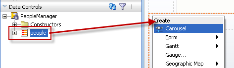 This example has been based on a bean-data control – just to quickly put something together. The collect of people was dragged to the page and dropped as a carousel:
