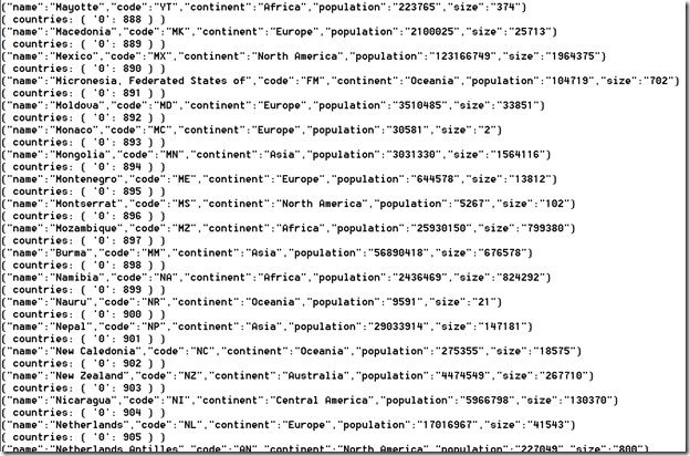Note how Mayotte enters at position one for the African continent, only to be quickly relegated by first Mozambique and then Namibia, only to disappear from the running top 3 when the message for Niger is consumed in the stream.