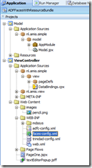 The ADF application demonstrated in the previous articles – ADFFacesWithResourceBundles – contains both the artifacts that are required in the reusable ADF Library that can provide dynamic resource bundle editing facilities to other ADF Applications as well as the artifacts for trying out the live resource bundle editing capabilities. The latter are not required in the ADF Library, so let’s first remove these from the application.