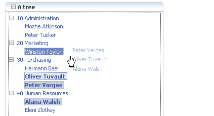There are many ways to reassign employees. You, as a programmer or DBA could, for instance, write an update statement to do that. But let’s say that you don’t want to lose your friends at the HR department. They want you to build a real flashy GUI to achieve the very same functionality. Ooops. No more lunch breaks for a week or two, because you planned this task to take only half an hour (the time that writing an update statement takes, if you type very slowly and test it intensively). ADF 11g provides you with two very handy features. First there’s the tree which is not new, but enhanced. Second there’s drag and drop functionality. Here is a way to use those two into a powerful combination.