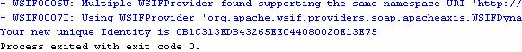 We can now write a simple Java application to use our getGUIDResult() method and get hold of unique identities, without any knowledge of the fact that an external service was used to provide that identity. And what’s even more surprising: the getGUIDResult() method itself knows that it used WSIF to call an external service, but it does not know that it was in fact a SOAP Web Service. The Service consumer only knows functional details about the service.
