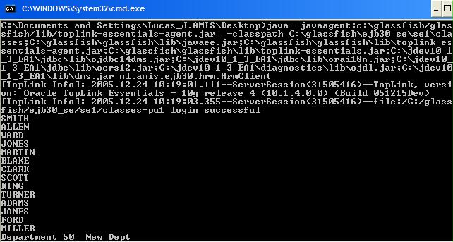 The following statement on the commandline suffices to run the nl.amis.ejb30.hrm.HrmClient class’s main method in a EJB 3.0 persistence context.