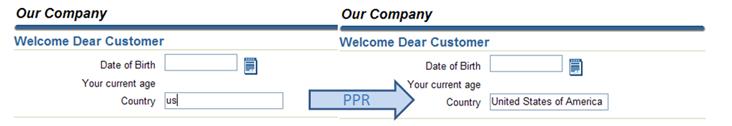 if you enter a value such as us or uk or nl in the Country field and tab out of it, the autosubmit + converter + PPR action will update the field near-instanteously with the full country name.