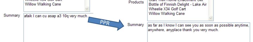Using this mechanism the possibilities for making life easier for our end users are virtually limitless. And an abundance of Converters especially to serve this need could become available. Let’s look at an another simple example for applying this idea. Suppose we have a text area where our end users can write summaries of telephone conversations they have had with customers or write any sort of report. The de facto steno language of today is probably SMS Speak (see for example http://sites.ninemsn.com.au/minisite/web2sms/help/smsdict.asp for some of the most popular terms in SMS Speak).