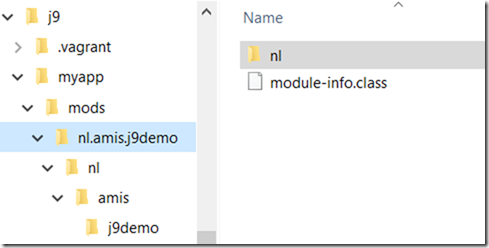 The root directory for the module has the same fully qualified name as the module: nl.amis.j9demo.