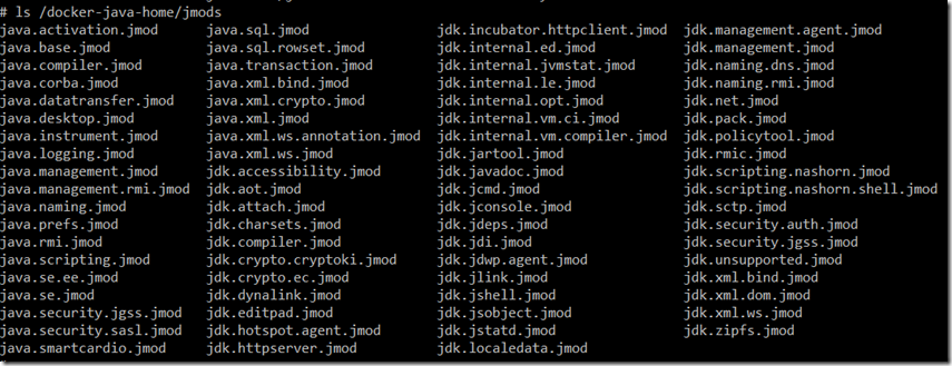 The JVM modules by the way on my Docker Container are in /docker-java-home/jmods