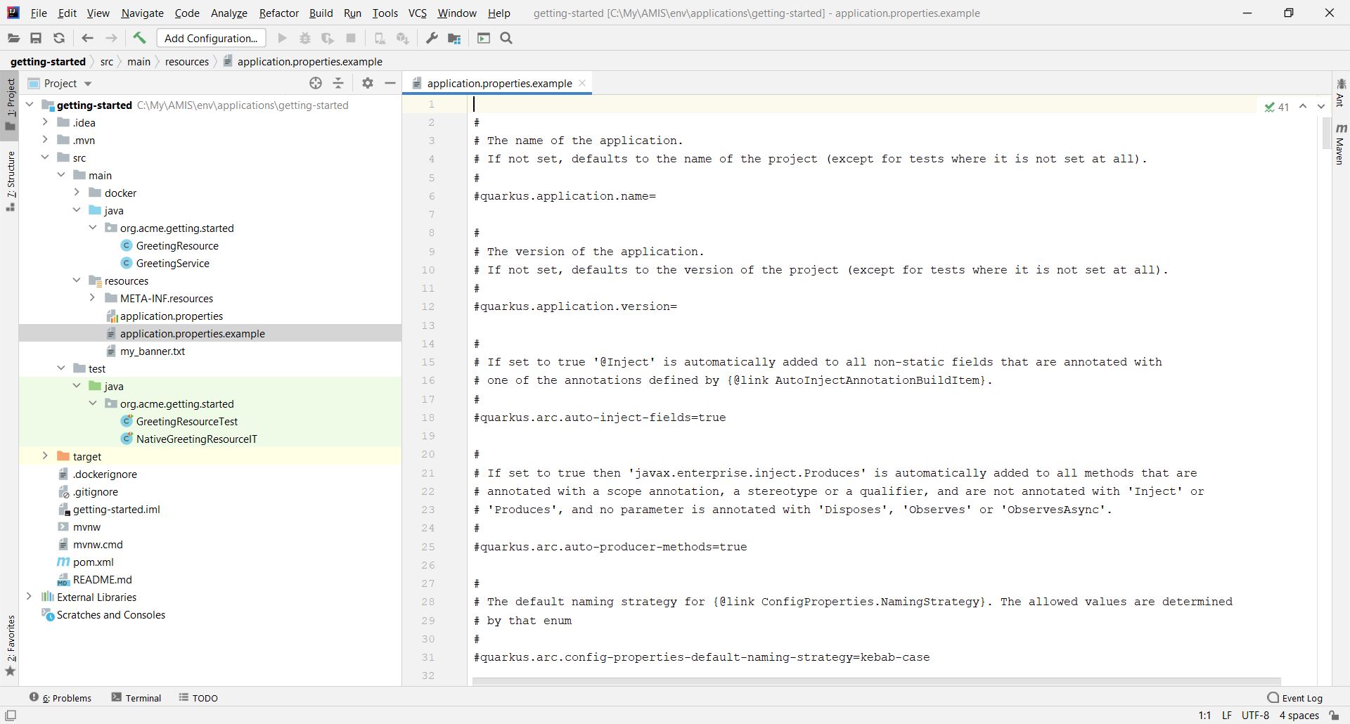 On the “QUARKUS – GUIDES” page, I clicked on the link “Configuring Your Application”. But instead of creating a new Maven project, I applied some of the steps in my existing “getting-started” Maven project, described in my previous article.