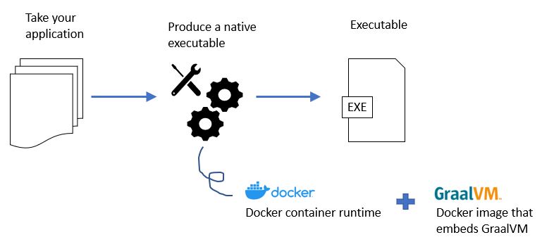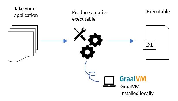 - Compiling the application to a native executable by using a local GraalVM installation or by leveraging a container runtime such as Docker and using a Docker container that embeds GraalVM