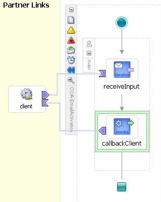 In the default BPEL process created for us, remove the callBackClient Invoke Activity – as we do not need it.