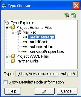 The Type Chooser opens. Locate the Mail.xsd schema and select the mailMessage element.