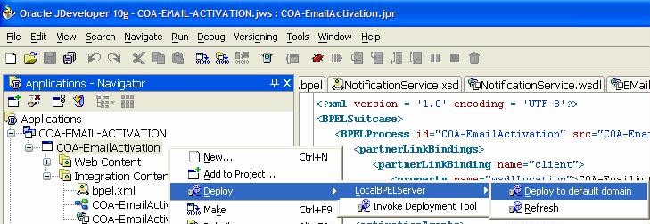 Ensure that the Oracle BPEL PM is up and running. Now we can deploy our BPEL Process to the Oracle BPEL Process Manager.