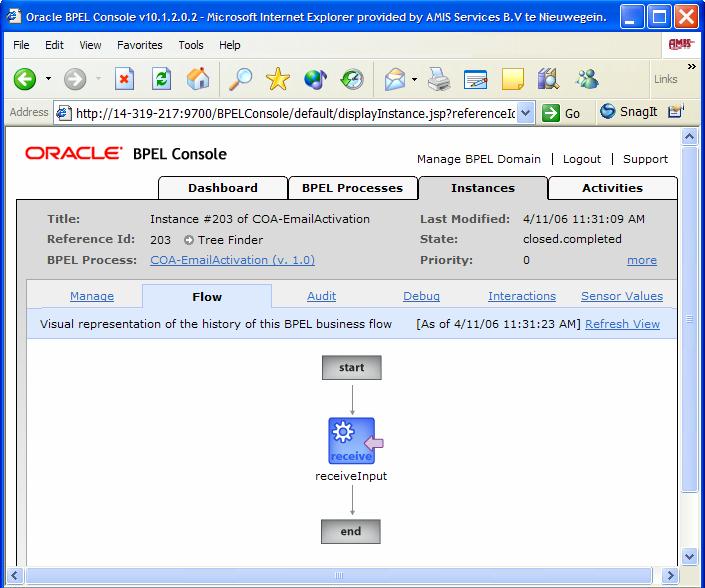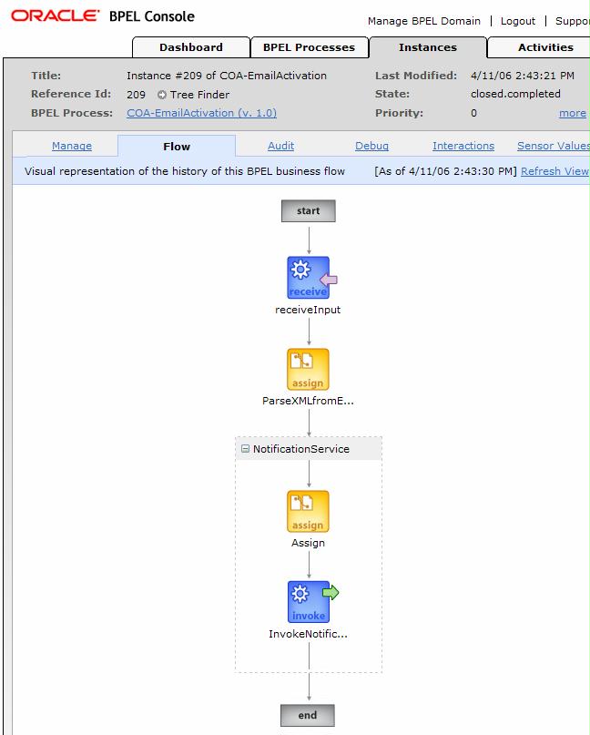 First, the BPEL Console tells us the process was run after we posted the Registration Form on the COA Website. That is very good, although not new.