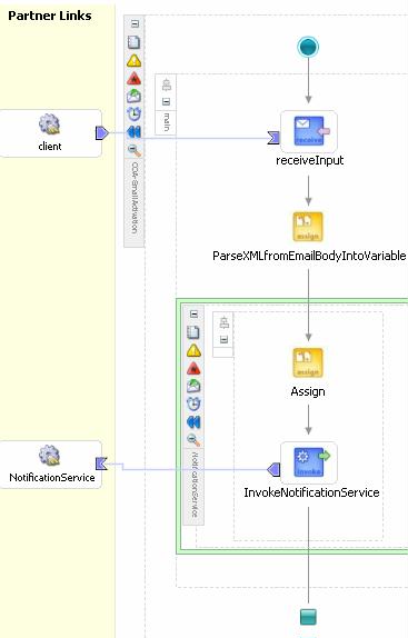 Save the WSDL file. Now we can create a variable in our BPEL process that is based on this type definition and subsequently parse the XML fragment from the Email body into this variable, for further processing.