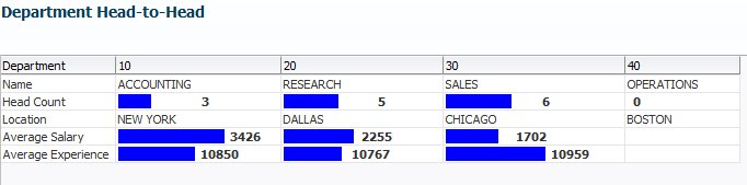I quite like this presentation. It reveals a lot of information in an appealing way. I started wondering it this way of presenting changes would be easy to implement in ADF Faces applications. My first port of call obviously was the ADF DVT (Data Visualization Tags) library. However, it did not seem to offer a graph type that is very close to this presentation. Gauges appeared to come closest, but not quite there. And the inline-display inside table rows is related to spark charts, but again, it is not quite the same.