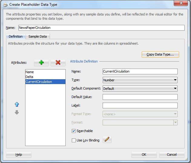 Switch to the Sample Data tab to register the data that this ‘dummy’ data control will feed into the ADF Binding framework. This data can be typed in or read from a source file.