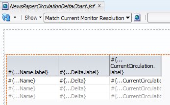 The page opens in the visual editor. Now, drag and drop the NewsPaperCirculation collection from the Placeholder Data Control to the page – drop it as an ADF Read Only Table: