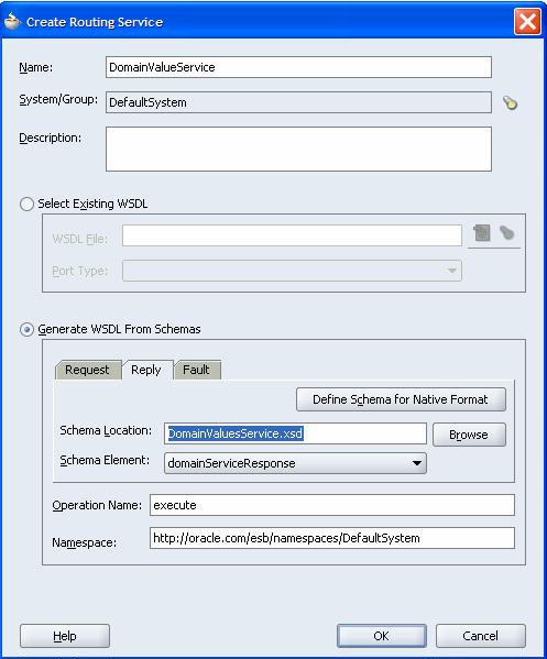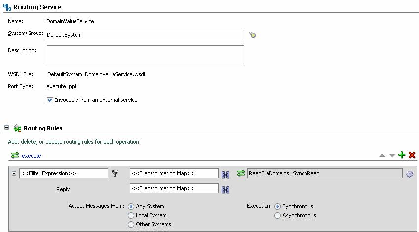 First of all, I create a File Adapter Service that synchronously reads the file that holds the domains. This file is specified through and XSD: