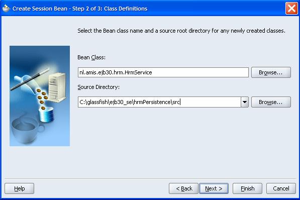 Specify the name of the EJB as well as the type: Stateless Bean Managed.
