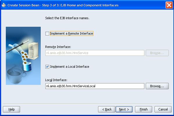 On the final page – really no relevant for our purpose as we will use the generated bean outside the EJB Container – we have to choose for Remote and/or Local Interface.